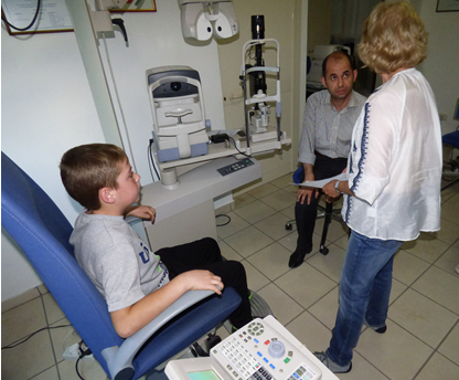 Einige tragische Schicksale mussten wir erleben. Aurel, ein zehnjähriger Junge kam mit einer durch einen Steinschlag verursachten Netzhautverletzung zu uns. Nur eine möglichst schnelle Operation kann das Auge noch retten. Doch die kostet mindestens 3000 Euro – unbezahlbar für die Familie von Aurel. Pellumb Brusha, der lokale Organisator der österreichischen Organisation Allianz für Kinder war zufällig mit einigen Schützlingen in der Praxis, als wir Aurel untersuchten. Er versprach nach telefonischer Rücksprache mit seiner Zentrale, dass der Junge in Österreich operiert werden kann. Wir schickten die medizinischen Unterlagen nach Österreich und hoffen, dass es für eine OP nicht zu spät ist.