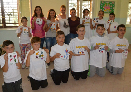 Zusammen mit ihnen bedruckten wir Stoffsäckchen, die – befüllt mit albanischen Erzeugnissen – am 28.11. zu Gunsten von DAIKA verkauft werden.