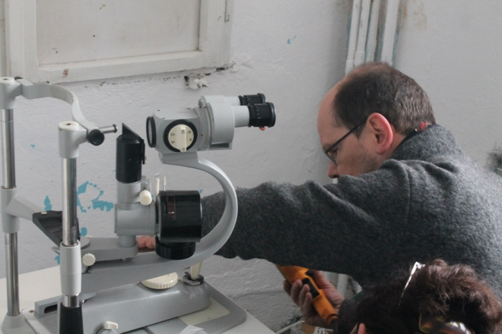 Nachmittags war geplant, die Geräte und den Untersuchungsablauf mit einigen Mitarbeitern des Hospitals zu testen, aber unsere Anwesenheit hat sich schneller herumgesprochen als wir dachten, und so war der Andrang groß. Am nächsten Morgen war zunächst ein Arbeiten gar nicht möglich, so ballten sich die Wartenden vor der Türe. Angesichts der äußerst ungünstigen Wetterprognosen waren wir zum Abbruch und vorzeitigen Rückfahrt nach Shkodra über die Kosovo-Autobahn entschlossen. Die hinzugerufene Chefin brachte aber etwas Ordnung in die Wartenden und überredete uns, noch einige Stunden zu untersuchen. Auffällig war, dass mitgebrachte Brillen oft nicht stimmten. Erstaunlich gering war die Anzahl schwererer Augenerkrankungen wie Glaukom oder Katarakt, die Dr. Dittrich ermittelte.
