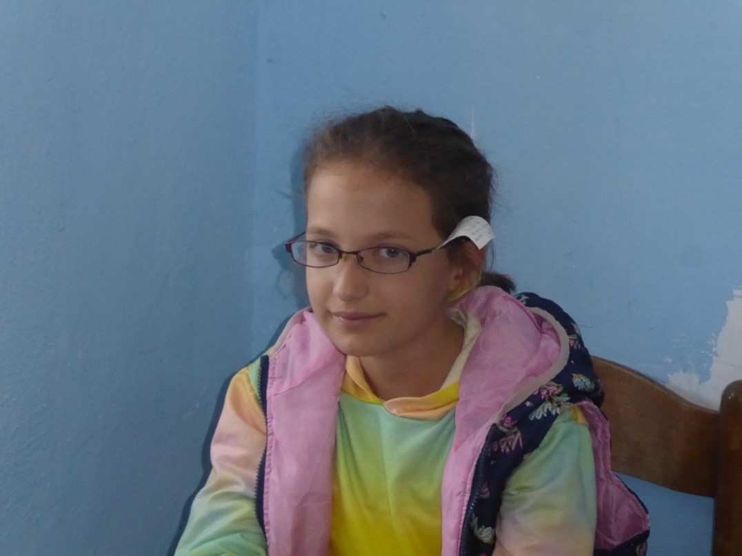 Der Visus der 13-jährigen Arjela betrug ohne Brille 20 % rechts, 10 % links; mit der Brille aus unserer Brillensammlung sieht sie jetzt binokular 100 %.