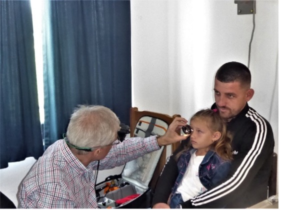 Wir waren sechs Teilnehmer, zum ersten Mal dabei waren der Augenarzt Dr. Martin Heidemann aus Trittau bei Hamburg und die Orthoptistin Carmen Schultze aus Rottenburg bei Tübingen. Von albanischer Seite waren dabei Dritan Nikolli, der in einer Klinik bei Aschaffenburg als Krankenpfleger arbeitet, und Lindita Gjegjaj, Krankenpflegerin in Fushe-Arrez, dazu kam jeweils ein örtlicher Übersetzer. Alle hielten durch, und so waren wir froh, unser geplantes Programm durchziehen zu können und keinem der telefonisch bestellten Patienten absagen zu müssen. Insgesamt haben wir in unseren Untersuchungsstationen 428 Patienten untersucht, davon 162 Kontrollen schon bekannter Patienten, 266 Patienten kamen zum ersten Mal. Bei einem Sehscreening in einer Grundschule in Bajram-Curri wurden 67 Schüler untersucht. Bei 15 von ihnen erfolgte eine genauere Untersuchung, 7 bekamen eine Brille verordnet. Dies zeigt, dass solche Sehscreenings sehr sinnvoll sind, um noch rechtzeitig sehschwache Kinder ermitteln und versorgen zu können. 50 Brillen wurden nach Verordnung gefertigt, 17 gebrauchte Brillen und 48 Nahbrillen wurden abgegeben.